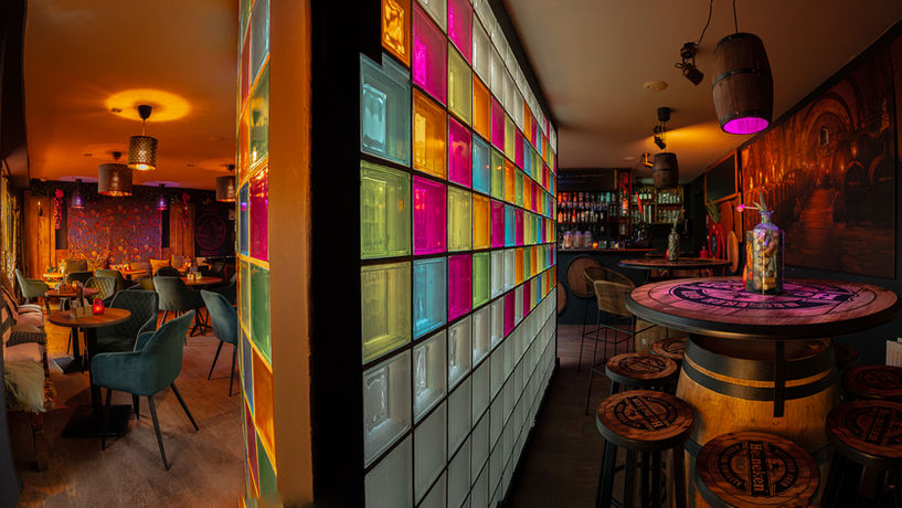 Zachte banken, vrolijke kleden, gekleurde kaarsjes en fijne muziek: de perfecte plek om te borrelen. Aan de ronde tafels met comfy stoelen speel je een spelletje uit de kast – en wie weet win je ook nog van je date.