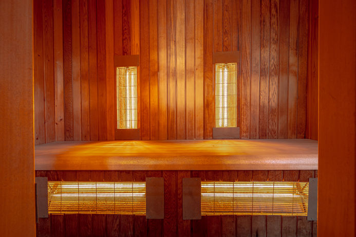 Midden op het lounge terras vind je de houten infraroodcabine: een warme, knusse plek waar je helemaal tot rust komt. Omringd door hout en zachte warmte is dit de ultieme cocon om te ontspannen, je spieren te laten herstellen of gewoon even alles los te laten. Hier kun je zorgeloos genieten en jezelf nieuwe energie geven.